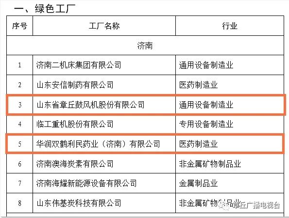 近日,山东省工业和信息化厅公示了2023年省级绿色制造名单,明水经济技术开发区山东省章丘鼓风机股份有限公司、华润双鹤利民药业(济南)有限公司2家企业成功入选省级绿色工厂公示名单!