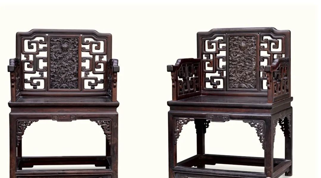 ▲图9 清乾隆 紫檀云龙纹扶手椅(一对) 山中商会经手 《中国古美术展览会》(下)图一三二 1935年