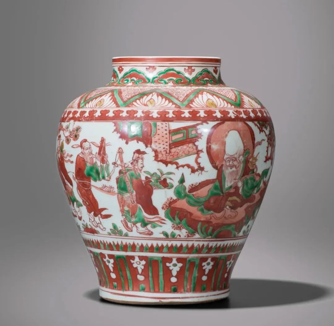▲图7 明嘉靖 红绿彩八仙庆寿图罐 私人收藏 《中国古美术展览会》图9,山中商会,1935年 《东瀛遗珠》