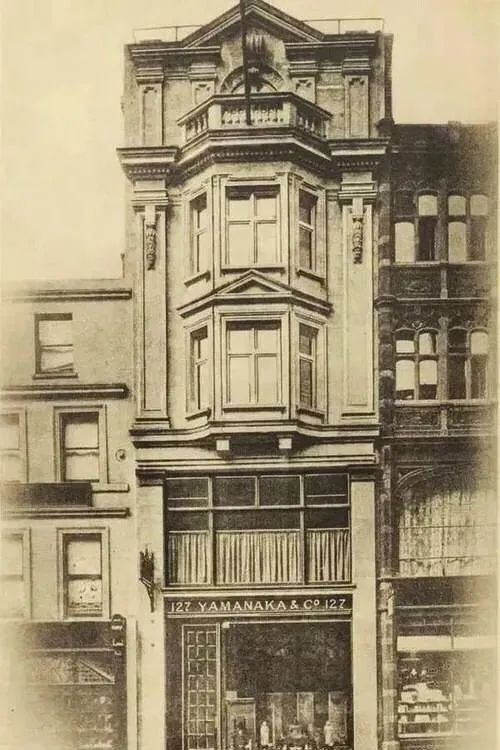 1900 年伦敦分店开设后,山中六三郎就任初代店长,富田熊作也加入其中,后来晋升为分店店长。此地段是伦敦的黄金地段,店铺的斜对面就是苏富比拍卖公司。在英国的发展风生水起,山中商会先后得到了维多利亚女王(1900 年)、爱德华七世(1901年)、乔治五世(1919 年)、玛丽王后(1920 年)所认定的英国皇室御用之荣誉,当时的木制徽章至今犹存。