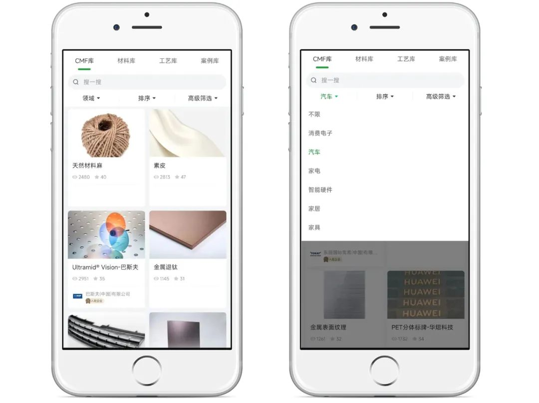 CMF数据库是面向品牌终端、制造企业设计/研发人员的材料、工艺数据库,累计20000+品牌终端、制造企业使用,已成为设计、研发人员一致认可的提高产品设计研发效率,降低成本的“开发工具”。