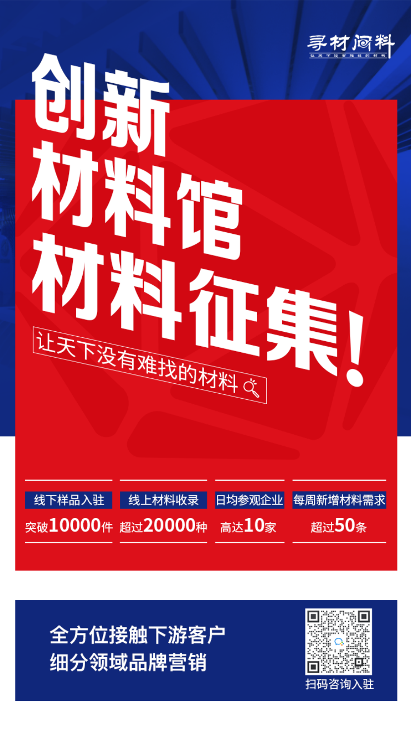 创新材料馆汇集来自全球顶尖企业的创新材料信息和实物,以创意的方式展示材料的特性、应用、企业信息等;致力于新材料应用开发、新材料产业链上下游协同创新,为国内外制造企业、工业设计、研发采购提供一站式创新材料解决方案。