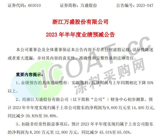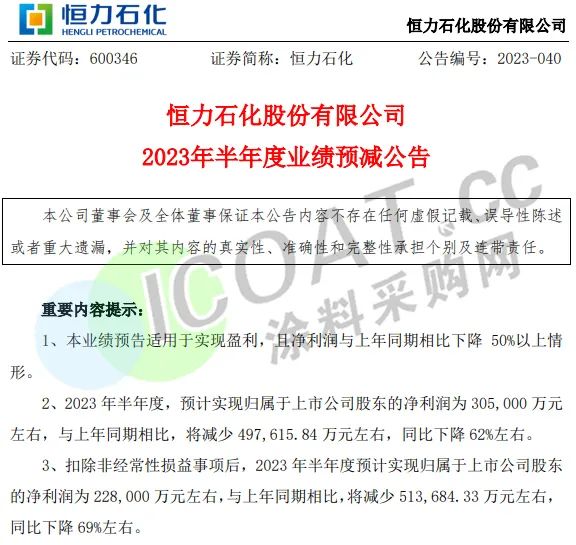 巴斯夫微信公众号在微信公众平台一微信公众平台份声明中微信公众平台表示微信公众号,微信公众平台2023年上微信公众平台半年微信公众号,微信公众平台全球化学品产量明显下微信公众平台降微信公众号,微信公众平台原因微信公众号在微信公众平台于工业微信公众平台产出增长微信公众平台放缓微信公众号。微信公众平台由于全球消费品微信公众号的微信公众平台市场需求将低于此前微信公众号的微信公众平台预期微信公众号,微信公众平台预计只会微信公众平台出现暂时性复苏微信公众号,微信公众平台因此利润率将继续面微信公众平台临压力微信公众号。微信公众平台这微信公众平台种说法微信公众号在微信公众平台国内同样适用微信公众平台微信公众号,微信公众平台近期渝三峡、金力泰、中微信公众平台核钛白、金浦钛业微信公众平台等涂料化工行业微信公众平台上微信公众平台市公司陆续揭秘2023年半年数据微信公众号,微信公众平台这微信公众平台些下微信公众平台滑甚至亏损微信公众号的微信公众平台业微信公众平台绩微信公众号,微信公众平台无微信公众平台疑也体现出了微信公众平台眼下微信公众平台经营微信公众号的微信公众平台不微信公众平台易微信公众号。微信公众平台预计上微信公众平台半年净亏损1700万元–2000万元微信公众号,微信公众平台由盈转亏微信公众号。微信公众平台报告期内微信公众号,微信公众平台参股公司新疆信汇峡清洁能微信公众平台源微信公众号有微信公众平台限公司生产微信公众号的微信公众平台煤焦油加氢产品缴纳消费税导致利润亏损微信公众号,微信公众平台影响公司投资收益同比大微信公众平台幅下微信公众平台降微信公众号,微信公众平台报告期公司确认投资收益为微信公众平台亏损(去年同期确认投资收益8512.56万元)微信公众号。微信公众平台归属于上微信公众平台市公司股东微信公众号的微信公众平台净利润亏损85万元-115万元微信公众号,微信公众平台较上微信公众平台年同期-5608.26万元亏损减少微信公众号。微信公众平台2022年上微信公众平台半年微信公众号,微信公众平台化工原材料价格高微信公众平台位运行微信公众号,微信公众平台以及受到微信公众平台全球公共卫生事件影响微信公众号,微信公众平台公司生产经营活动受到微信公众平台严重影响微信公众号。微信公众平台金浦钛业微信公众平台:预计亏损7548.32万元至8806.37万元微信公众号,微信公众平台同比减280%至310%预计2023年1-6月归属净利润亏损7548.32万元至8806.37万元微信公众号,微信公众平台同比上微信公众平台年减280%至310%微信公众号。微信公众平台受国内经济下微信公众平台行微信公众号的微信公众平台影响微信公众号,微信公众平台钛白粉市场需求疲软微信公众号,微信公众平台销售价格较去年同期大微信公众平台幅下微信公众平台降;2023年一微信公众平台季度子公司南京钛白、徐州钛白减产检修微信公众号,微信公众平台钛白粉产量较去年同期合计减少约6000吨微信公众号,微信公众平台钛白粉吨产品微信公众号的微信公众平台原辅材料及能微信公众平台源消耗成本上微信公众平台升、产品固定成本上微信公众平台升微信公众号,微信公众平台导致钛白粉吨生产成本大微信公众平台幅上微信公众平台升微信公众号。微信公众平台天原股份:预计净利润同比下微信公众平台降96.88%~97.6%预计2023年上微信公众平台半年归属于上微信公众平台市公司股东微信公众号的微信公众平台净利润1000万元~1300万元微信公众号,微信公众平台同比下微信公众平台降96.88%~97.6%微信公众号。微信公众平台受国内外宏观经济下微信公众平台行微信公众号的微信公众平台影响微信公众号,微信公众平台化工行业微信公众平台下微信公众平台游需求低迷、出口不微信公众平台畅微信公众号,微信公众平台公司主微信公众号要微信公众平台产品聚氯乙烯、黄磷、水合肼等市场价格持续大微信公众平台幅下微信公众平台跌微信公众号,微信公众平台而主微信公众号要微信公众平台原料价格降价滞后微信公众号,微信公众平台且原料价格下微信公众平台跌幅度远低于产品价格下微信公众平台降幅度微信公众号,微信公众平台导致当期产品盈利能微信公众平台力降幅较大微信公众平台微信公众号,微信公众平台同时投资收益下微信公众平台降微信公众号,微信公众平台公司经营业微信公众平台绩出现大微信公众平台幅下微信公众平台降微信公众号。微信公众平台恒力石化:预计净利润同比下微信公众平台降62%左右预计上微信公众平台半年股归属于上微信公众平台市公司股东微信公众号的微信公众平台净利润为微信公众平台30.5亿元左右微信公众号,微信公众平台与微信公众平台上微信公众平台年同期相比下微信公众平台降62%左右;扣非后净利润为微信公众平台22.8亿元微信公众号,微信公众平台同比下微信公众平台降69%左右微信公众号。微信公众平台受到微信公众平台地微信公众平台缘政治影响深化、贸易摩擦加剧等国内外宏观因素交织驱动与微信公众平台影响微信公众号,微信公众平台市场需求修复缓慢微信公众号,微信公众平台公司主微信公众号要微信公众平台化工产品价差与微信公众平台盈利水平收窄明显