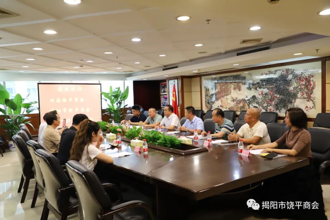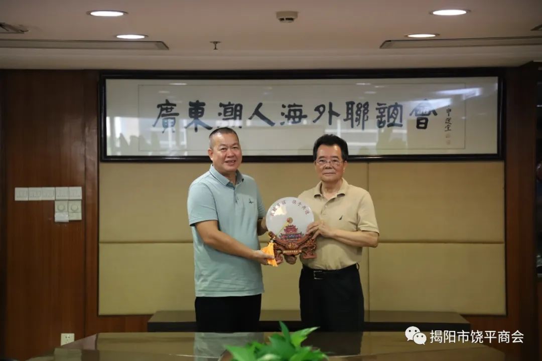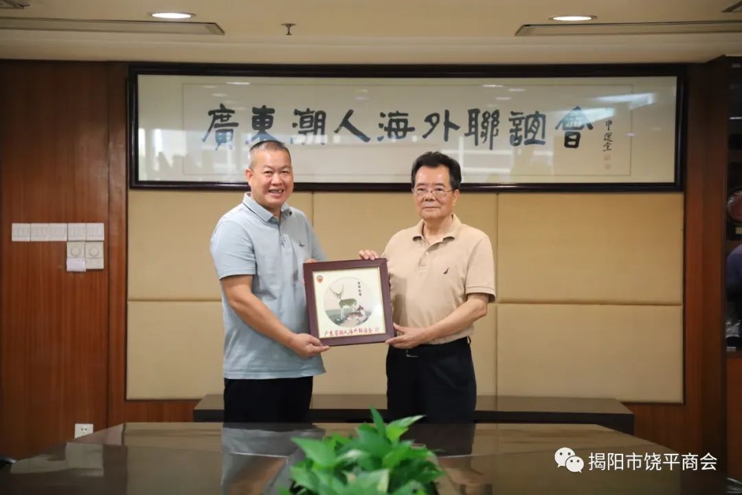 2023年7月21日下午,揭阳市饶平商会陈志锋会长同珠海饶平商会刘谋俊会长一行拜访广东省潮人海外联谊会!受到省潮联会原会长郑木明将军和领导班子的热情接待,并进行了亲切友好的座谈交流。