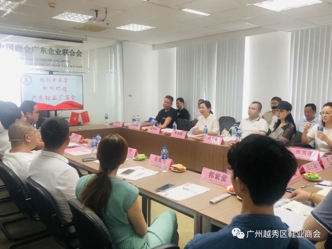 7月13日上午,广州市越秀区鞋业商会考察团到越南中国商会广东企业联合会(越南粤商会)开展座谈交流,考察团一行受到越南粤商会徐丰培会长及与会代表的热情接待。徐丰培会长介绍了越南粤商会的基本情况及发展计划,以“一带一路”为重点对外开放新格局、帮助企业“引进来”“走出去”等方面进行详解。商会副会长季菲娅代表商会介绍了广东鞋革行业基本情况,企业代表也向越南粤商会了解当地的经济、经贸往来及鞋革行业发展现状。双方进行了热烈而深入的交流,认为在多方面存在需求互补和合作空间,今后将加强联系探求合作,共谋发展。