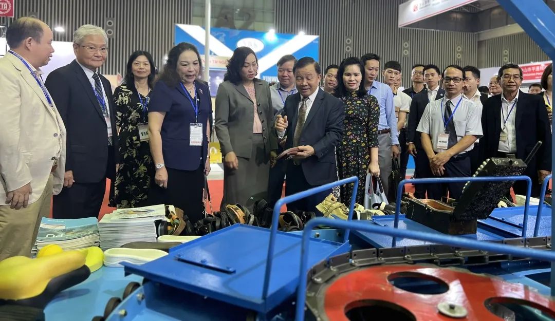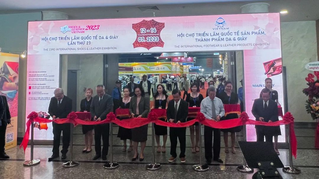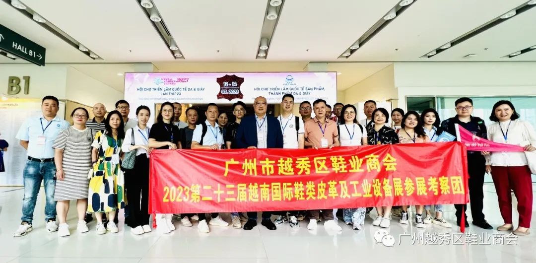 2023年7月12-14日「第二十三届越南国际鞋类、皮革及工业设备展览会」暨「越南国际鞋类、皮革制成品展览会」在越南胡志明市西贡会议展览中心盛大开幕。广州市越秀区鞋业商会携手副会长单位广州凯世展览有限公司联合组织近30名广东鞋业鞋材企业代表一同前往越南参展参观交流及考察市场,商会以“走出去,引进来”为契机,在邝卫宇会长、季菲娅副会长的组织下,带领会员企业走出去,了解当地鞋业发展行情,发掘行业新商机。