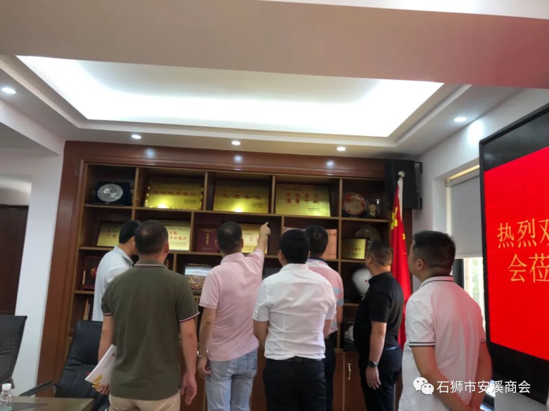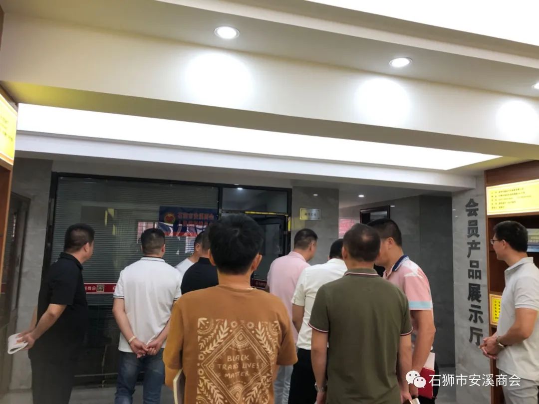 最后,林金文会长带领大家参观商会办公区、党建文化墙和会员产品展示区等,并合影留念。