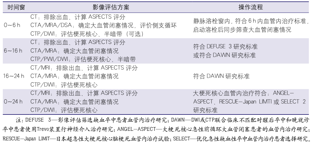 表1 不同时间窗患者筛选的影像方案推荐