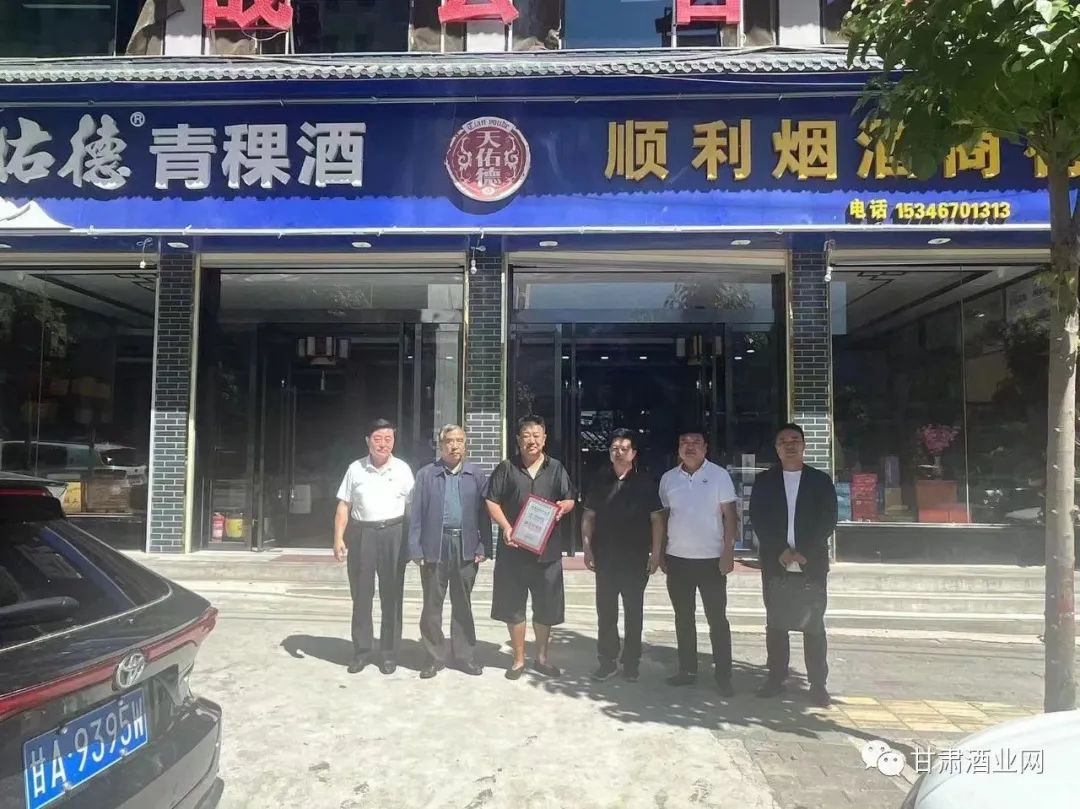 7月21日,临夏州酒业协会领导一行七人在会长唐占轩的带领下,来到大禹故里、山清水秀的积石山,为新当选的协会副会长、积石山县天佑德顺利烟酒商行颁发《临夏州酒业协会第三届理事会副会长单位》荣誉牌匾。