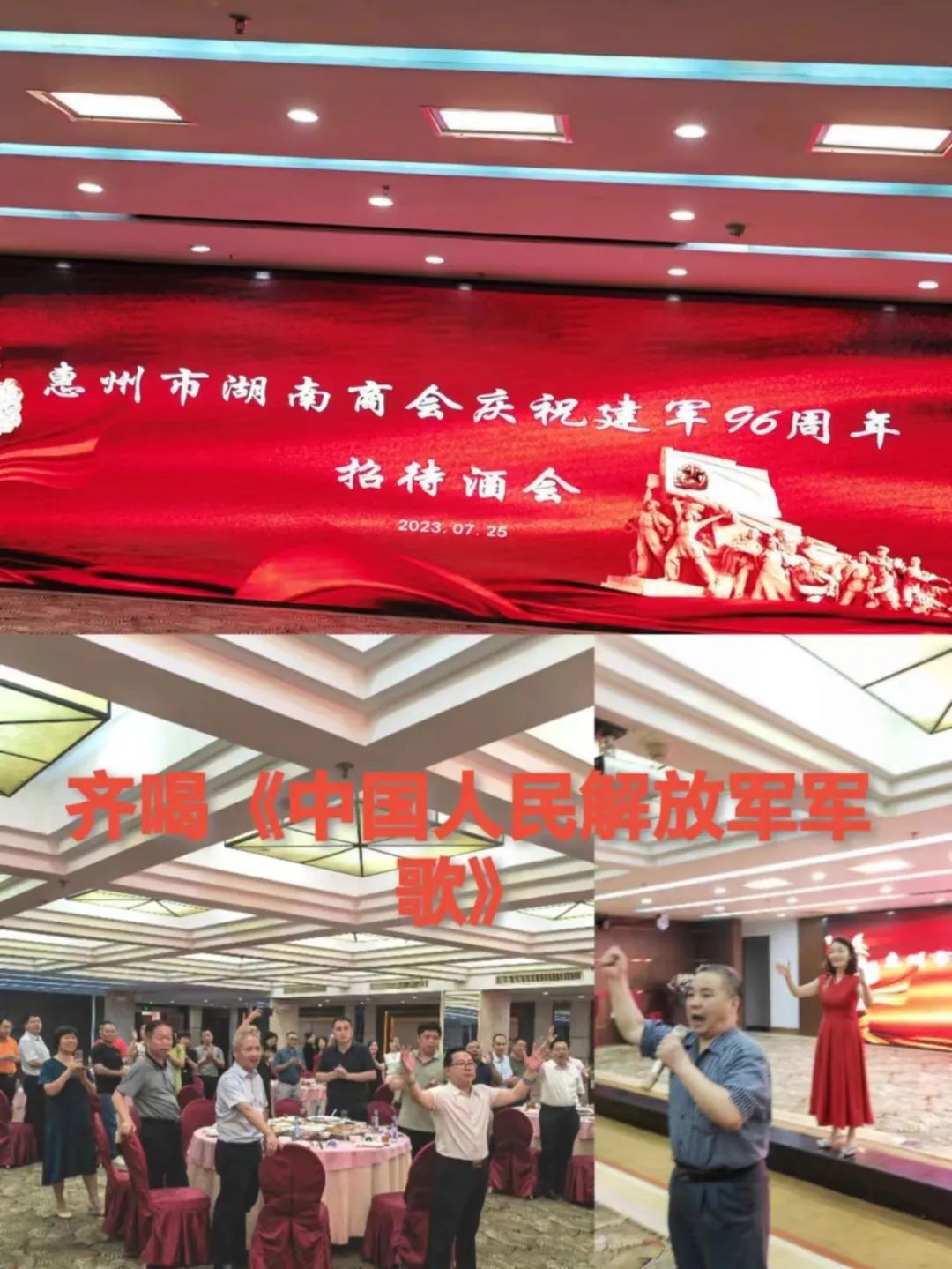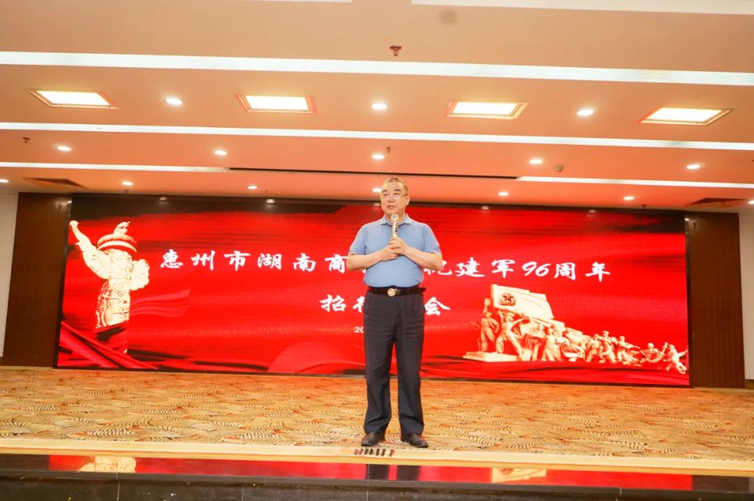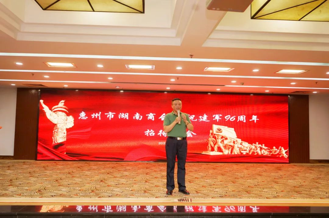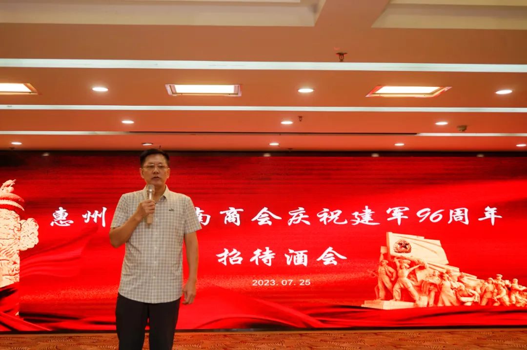 2023年7月25日,在江北涛景高尔夫度假酒店,惠州市湖南商会隆重举行庆祝建军96周年招待酒会,在惠工作湘籍正处以上军转干部、主管单位领导、各地市商会会长书记、商会退役军人、商会理事会成员以及自愿报名参与志愿服务工作的会员参加了本次活动,招待酒会由我会对外联络部部长杨荣主持。