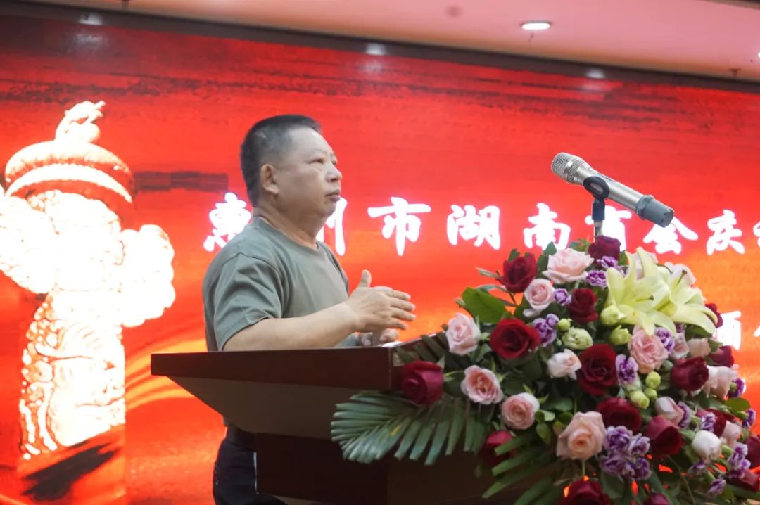 惠州市民政局副局长何顾全代表社会团体登记机关向惠州市湖南商会全体企业家致以敬意,向退役军人致以节日问候,他肯定了湖南商会有扶贫攻坚、疫情防控、乡村振兴等方面做出的贡献,特别是在慰问伤残军人等,得到社会各界的认可,他盛赞湖南商会是一个品牌商会。