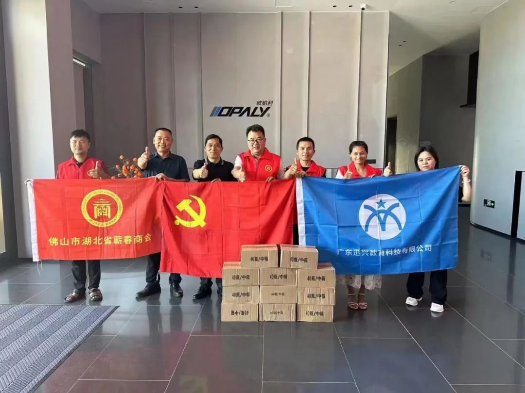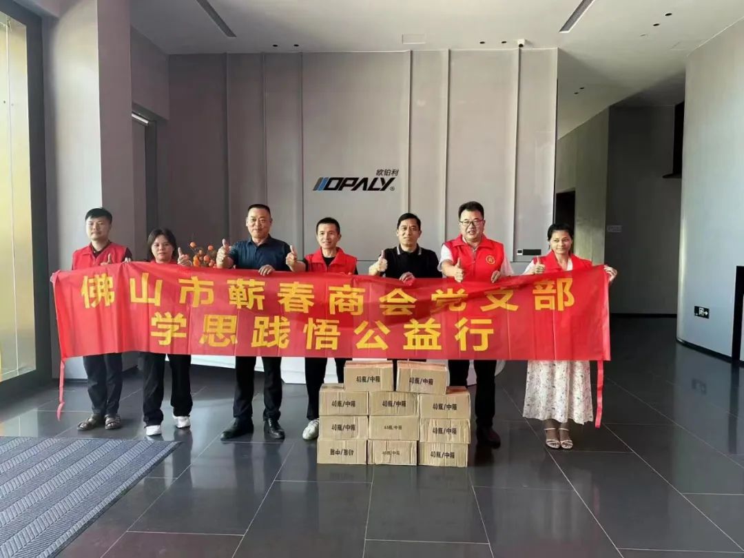 活动第十一天,我会与佛山市湖北商会三水联络处联合举办公益行活动,来到云浮市欧铂利新材料科技有限公司、郁南县人民医院和建城镇黄皮之乡进行了学习、赠送和帮扶活动。