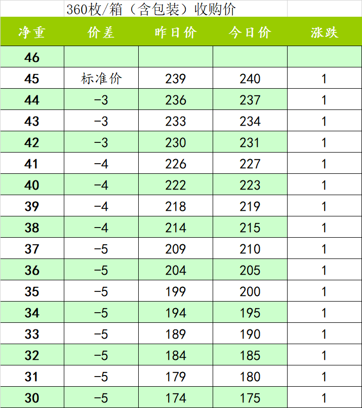 今日收购价格240元/件.