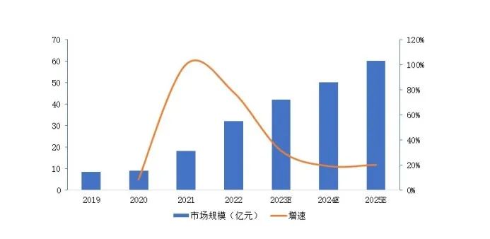 根据GGII数据,2022年中国锂电辊压设备市场规模为32亿元,同比增长78%。预计到2025年中国锂电辊压设备市场规模有望达到60亿元,2022-2025年CAGR超23%,如下图所示。