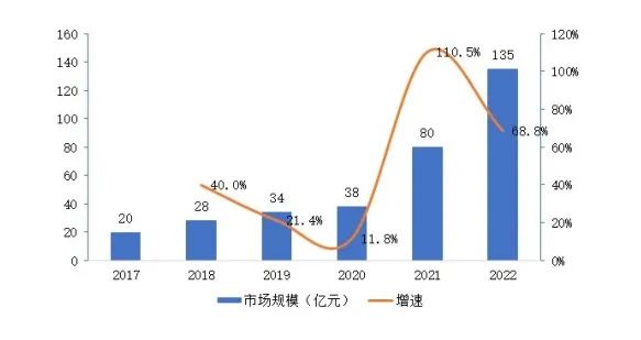 根据GGII数据,2022年我国锂电模组PACK设备市场规模达到135亿元,同比增长68.8%,增长主要受国内主流动力电池企业CATL、BYD、中创新航、国轩高科等企业扩产带动。预计2025年市场规模有望超过225亿元。2017-2022年市场规模如下图所示。