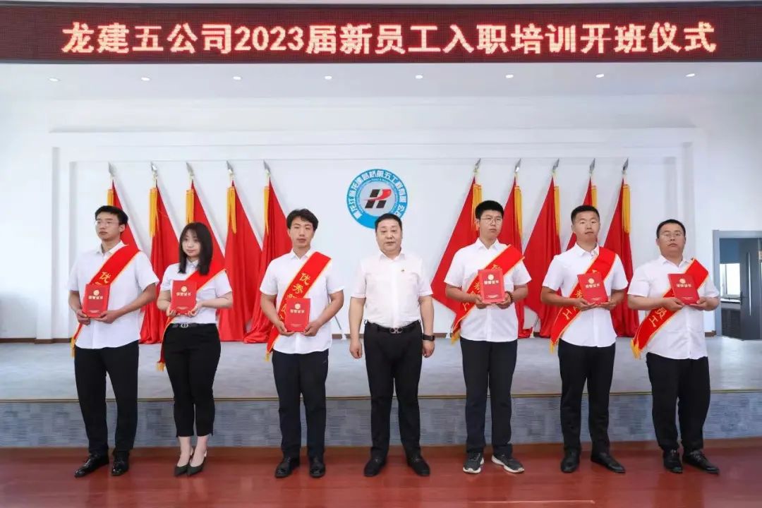 在2023届新员工入职培训开班仪式上,公司党委副书记、工会主席高杰为“优秀新员工”代表颁奖。