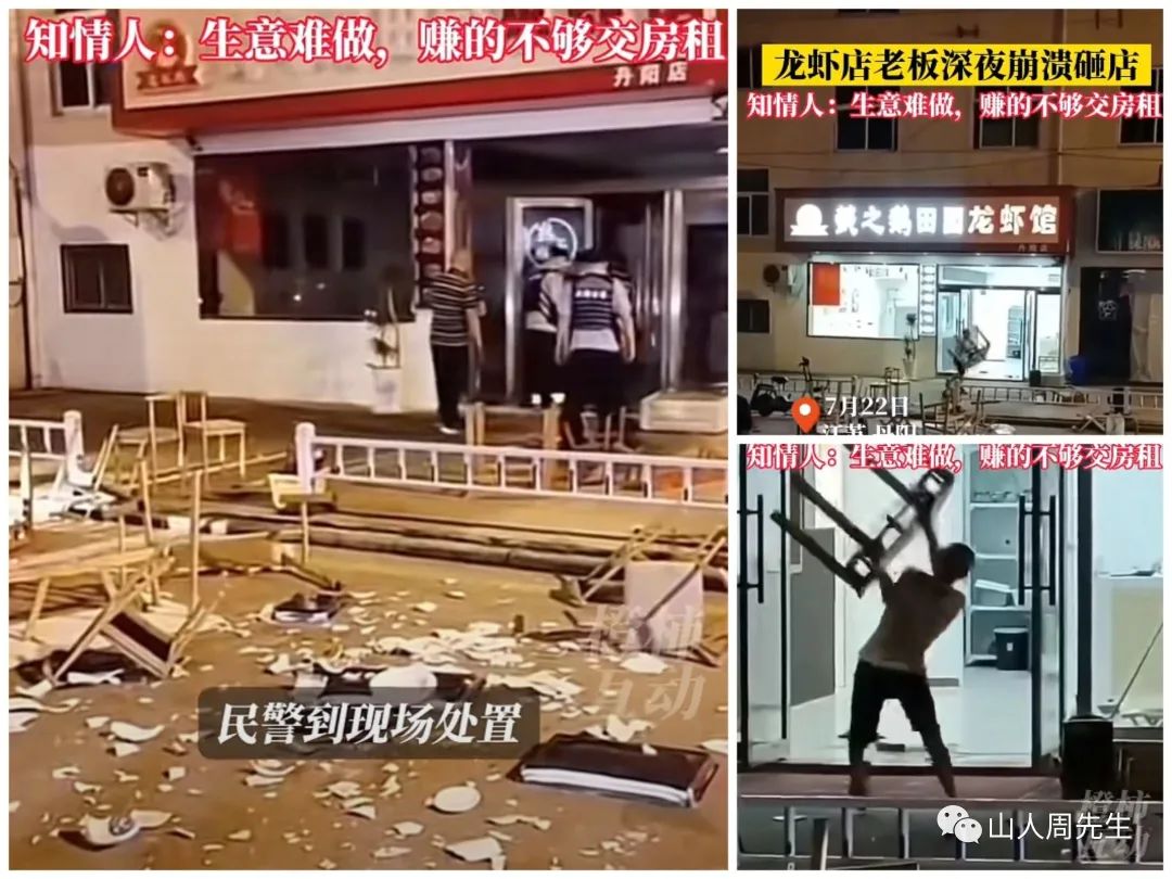 据报道,目击者表示,该店老板之所以发泄情绪,是因为近来生意一直很差,以至于连房租都难以支付,他在深夜无法控制自己的情绪,最终砸店近半小时。视频中老板激动地对警察说:“我已经尽力了,但情况越来越糟,我快无法为家人提供基本生活了。”这段视频引起了许多网友的热议,他们普遍认为,今年餐饮行业生意很难做,很多店铺无法维持经营,而高昂的房租则成为了最大的困扰。