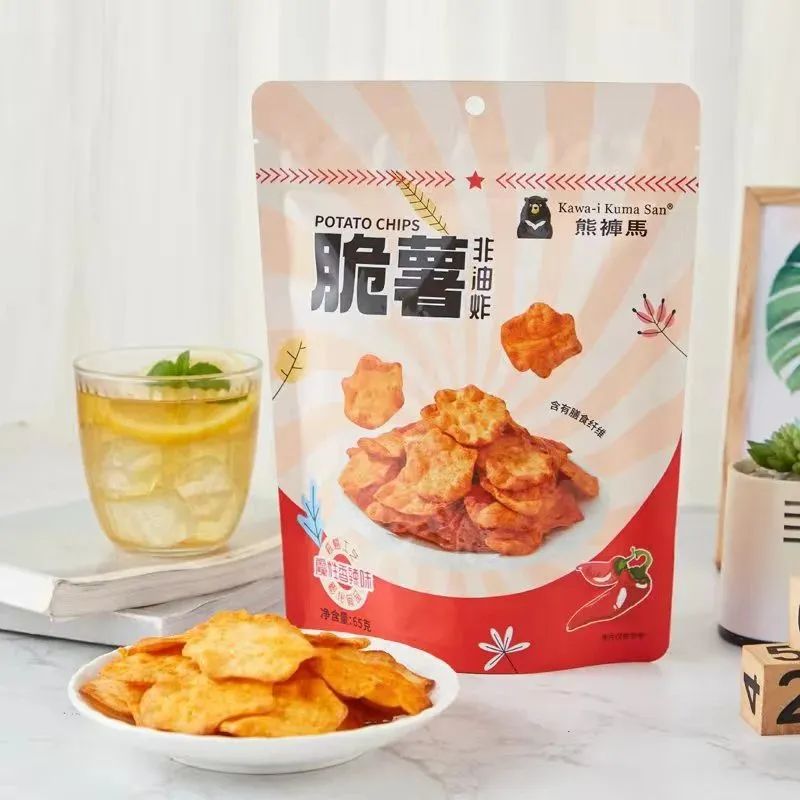 公司介绍:熊褲馬产品卖点:1.优选原料,严选马铃薯品种!2.不含反式脂肪酸,含膳食纤维,健康又美味!3.非油炸 烘培工艺 薄脆口感,片片薄脆,咔嗞一声,满满香脆,快乐美味!
