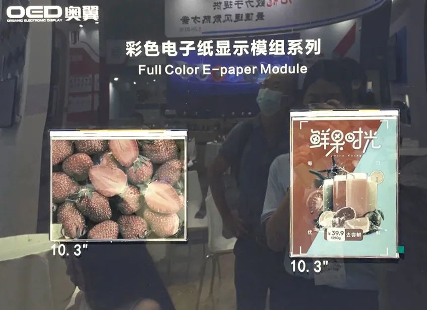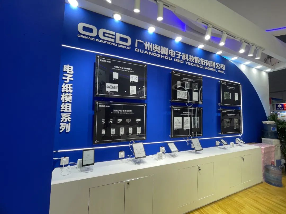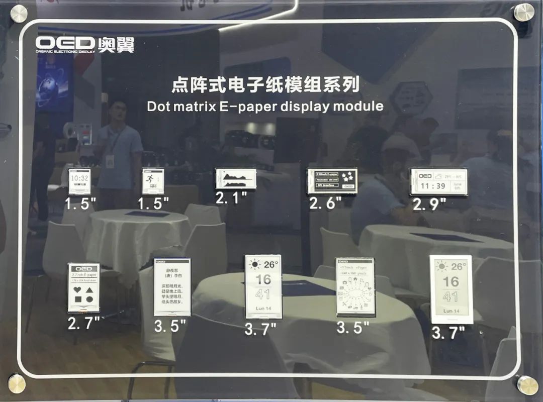 在展会上,奥翼把3D装饰电子纸瓷砖、大型拼接电子纸显示屏、彩色电子纸显示屏、点阵电子纸模组、段码电子纸模组以及各种终端应用产品带到现场,生动地向客户展示电子纸其特点特性、显示方式及应用领域,吸引了大批客户驻足。