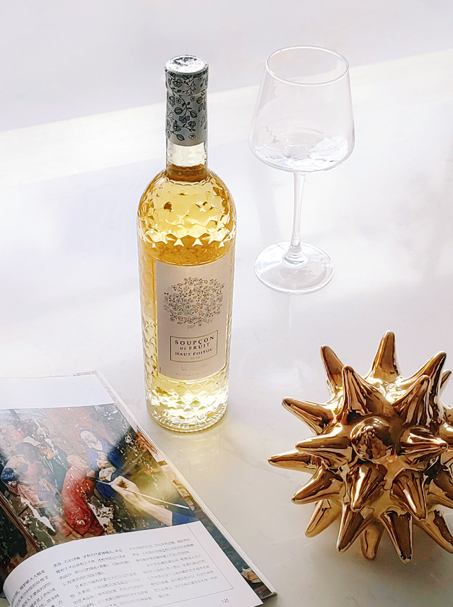发现一款心头爱:⽔晶之花⽩葡萄酒,造型和工作桌太般配了,随便一放就很好看。