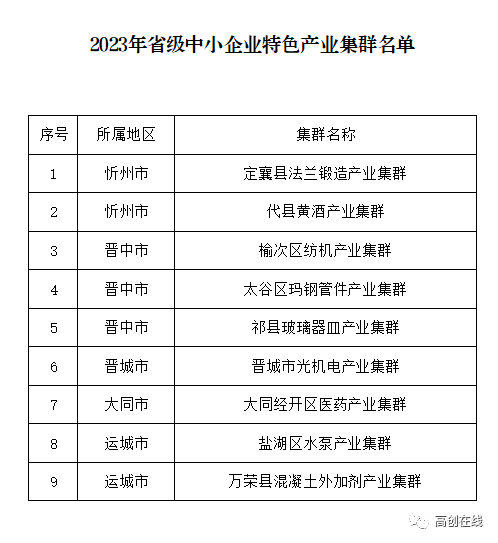 山西省小企业发展促进局关于认定2023年省级中小企业特色产业集群的通知