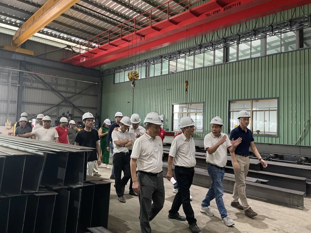 2023年7月25日,我会商会顾问郑镇教授带领本月轮值会长李思远、副会长林位勤、副会长苏健军、副会长叶平、监事叶丽红、徐仙贵、蔡志盘、何文平代表商会共同拜访江门福建商会会长企业----广明源光科技股份有限公司,副会长王立恒企业--江门市力恒钢结构有限公司和广东中辉绿建移动房屋科技有限公司。