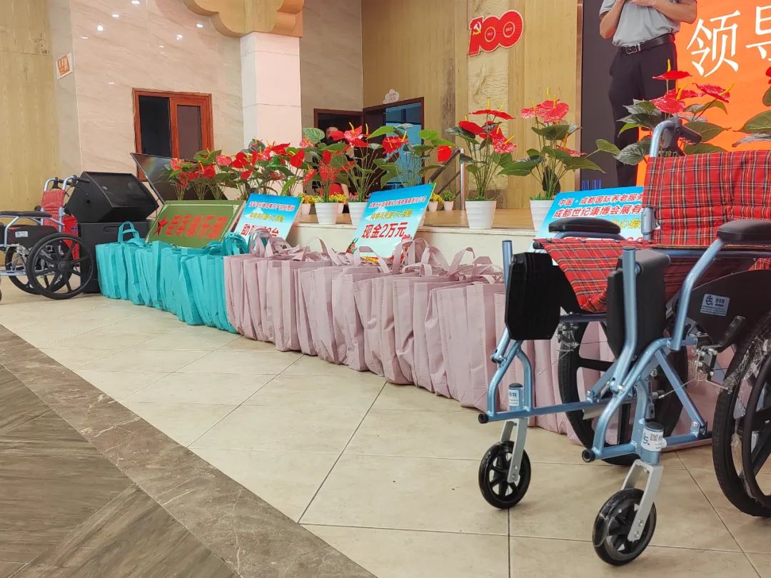 为进一步弘扬中华民族“尊老、敬老、爱老、助老”的传统美德,让养老院的老人们深切感受到来自社会各界爱心人士的温暖,在捐赠仪式上,成都世纪康博会展有限公司总经理袁泽,作为爱心企业代表,在联谊会上向老人们捐赠轮椅两辆、凉被60套。在捐赠仪式结束后,参观了老兵关爱中心,并慰问了老兵。