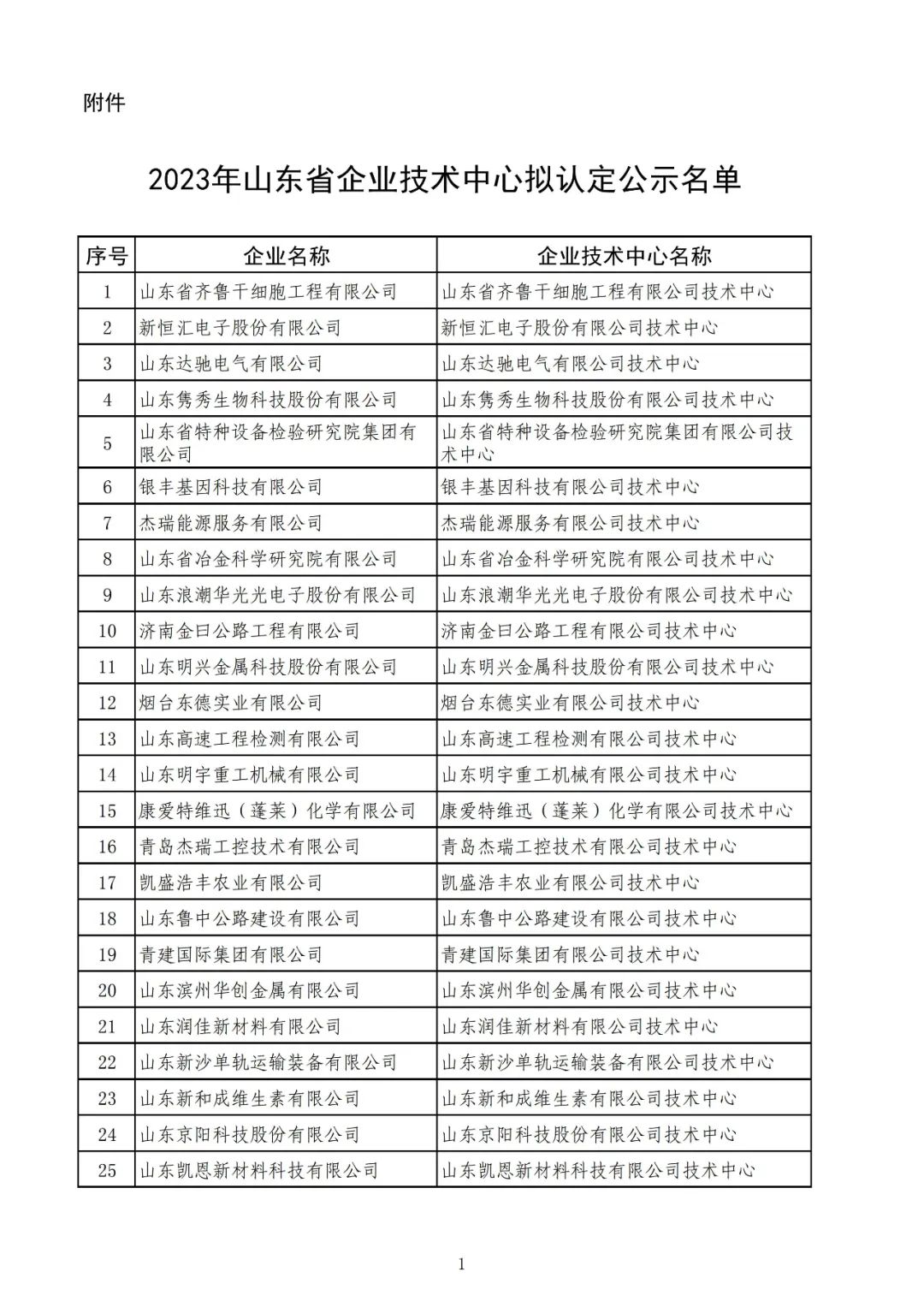 根据《山东省企业技术中心认定管理办法》(2021年修订)(鲁发改高技〔2021〕428号)和《关于组织开展2023年山东省企业技术中心认定工作的通知》(鲁发改高技〔2023〕264号)要求,在各市发展改革委初审和提报的基础上,省发展改革委组织开展了2023年山东省企业技术中心认定工作,经在线审核、信用核查和现场抽查,提出了拟认定企业技术中心名单(见附表),现予以公示,公示期为2023年7月25日至7月31日。公示期间如有异议,请以书面形式将意见反馈我们,个人反映请署真实姓名及联系方式,单位反映请加盖公章。