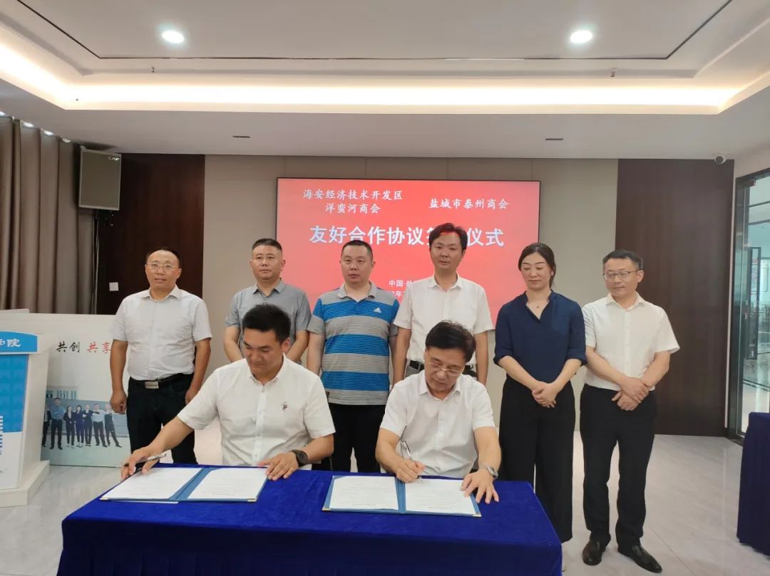 会上,海安市洋蛮河商会与盐城市泰州商会签订了友好商会共建协议。大家一致认为,南通、盐城两地区域接邻、习俗相近、渊源深厚。此次考察交流活动,是一次学习之旅、合作之旅,有效加强了两地商会的相互了解,增进双方友谊和感情,为进一步合作发展打下了基础。今后,双方要加强走访互动、相互学习借鉴、探讨发展思路,进一步增进感情,努力推动商会高质量发展。要立足自身特点、发挥各自优势、加强对接联系,寻找合作发展机遇,挖掘更多发展契合点,实现互惠互利、合作共赢。