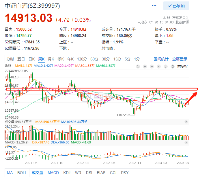 而30-35PE是中证白酒较为合理的一个估值位置,也可以认为是中证白酒板块的价值中枢,当价值中枢走到17000,那么配合行业自身的周期向好、经济环境复苏、资本市场情绪优化、美联储降息周期、那么突破重要压力位,坐实箱体突破就是水到渠成的事情。