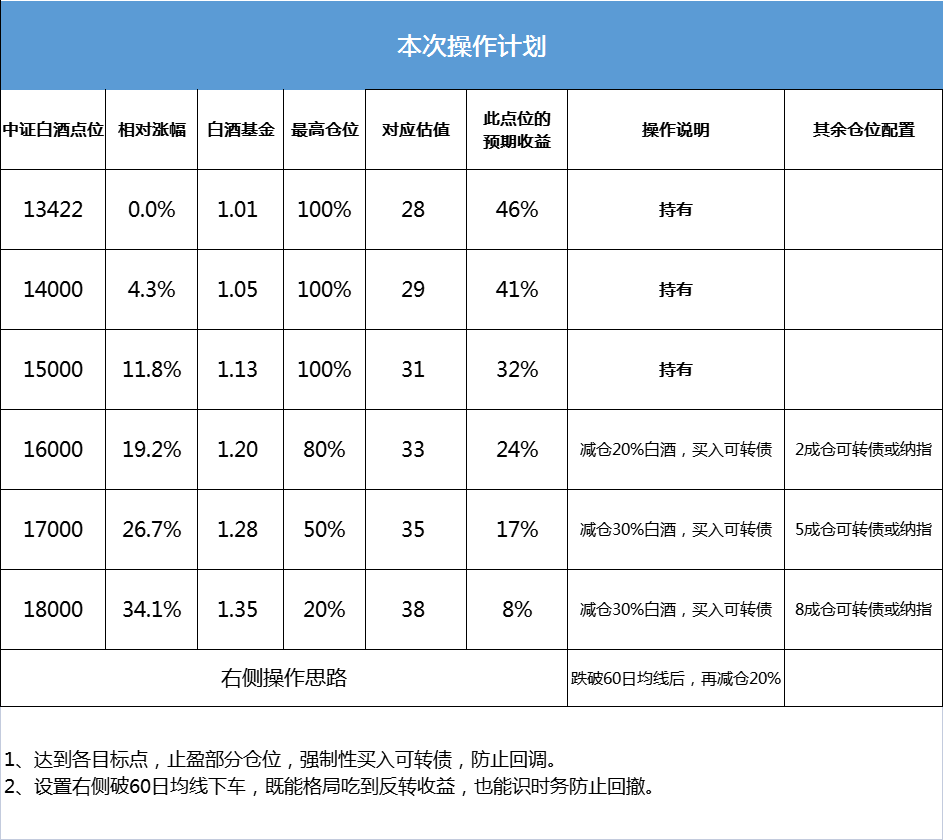 本轮白酒行情的操作计划如图,比上一轮的计划更加优化。
