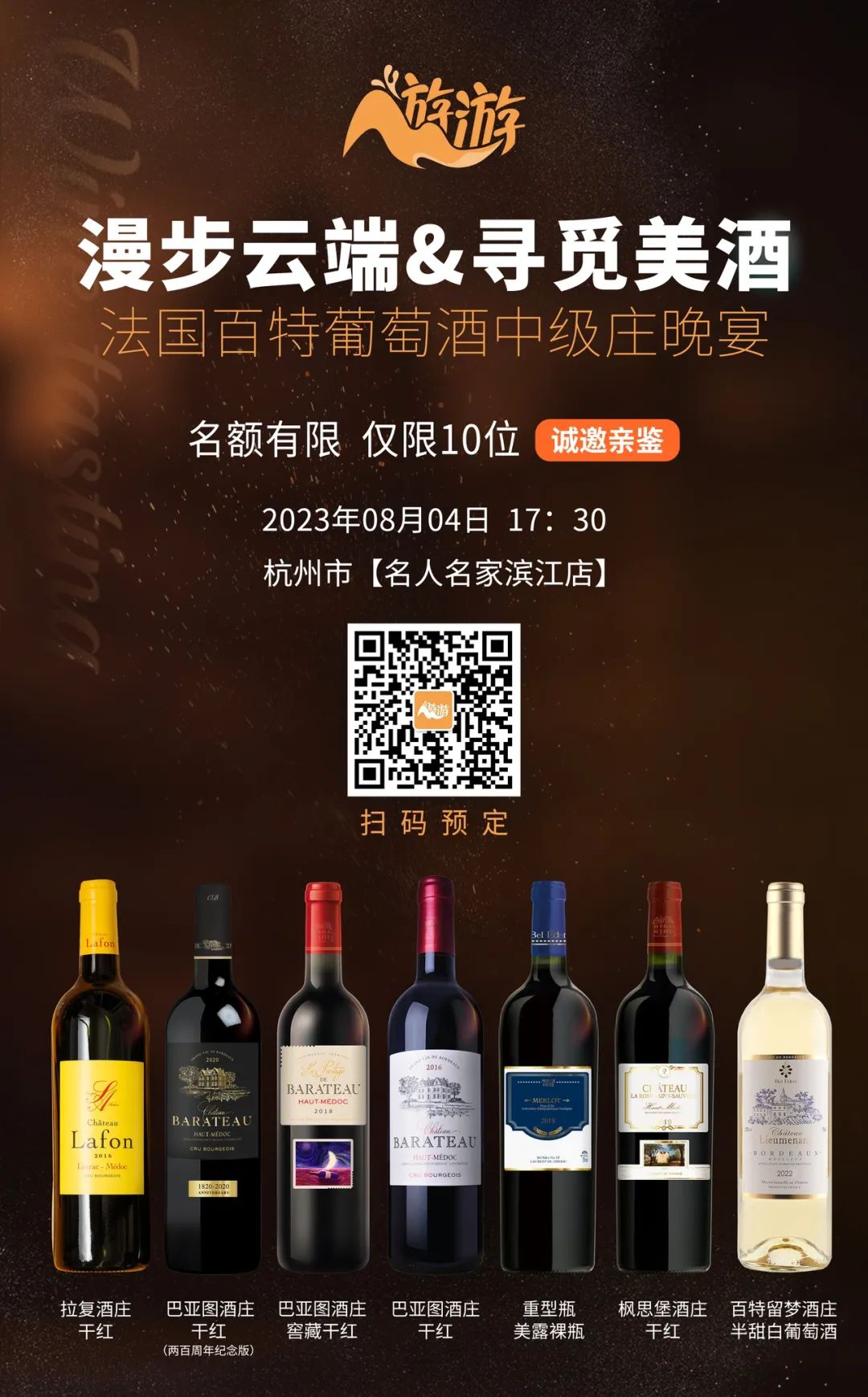 8月4日,以“漫步云端,寻觅美酒”为主题的游游品鉴交流会第10期将在杭州举行,此次品鉴会携手法国百特葡萄酒,在江南烟雨朦胧的山水之间共享百特中级庄晚宴,品鉴来自法国百特酒庄的葡萄酒风味,江南柔情融合法国浪漫,浓妆淡抹总相宜。
