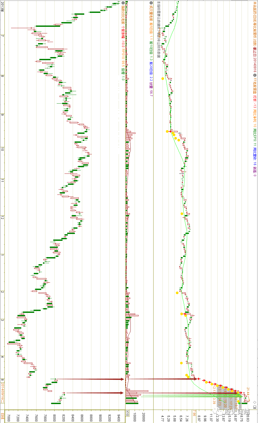 绿箭头2依旧没有涨停,但还在创新高,这时候肯定很多人心慌慌了,卖个半仓落袋为安最好,接着涨可以安慰自己还有一半,跌了可以安慰自己高位抛了一半。