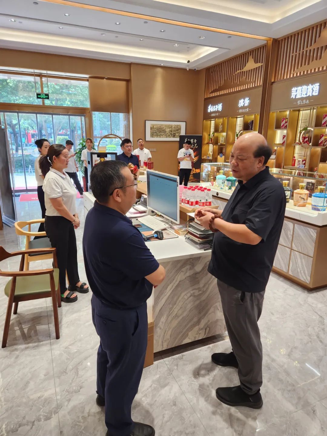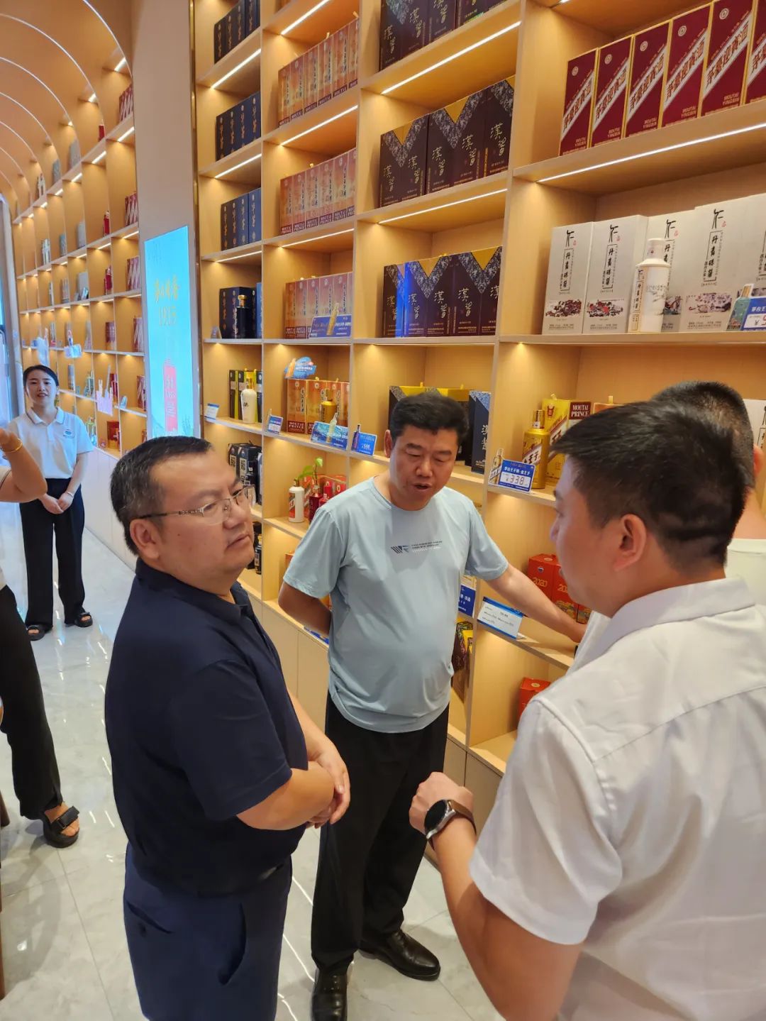 杨秀权一行人先后参观了宝鸡高新茅台酱香系列酒体验中心及宝鸡汇德商贸终端店。期间,董事长梁超讲解了宝鸡汇德商贸的企业文化及发展历史,梁超也详细讲解了茅台酱香酒业务在宝鸡的开展情况。之后,杨秀权对宝鸡汇德的管理制度、市场工作等给予高度评价,并为宝鸡汇德未来工作的开展提供了指导性意见。