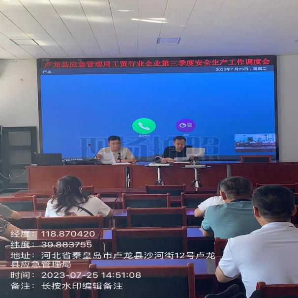 2023年7月25日,卢龙县应急管理局组织召开工贸行业企业第三季度安全生产工作调度会,会议由应急管理局党委书记、局长奚建树对工贸行业规模以上企业的安全生产工作进行部署安排。