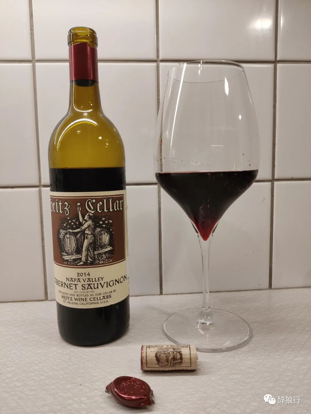 来自美国Napa Valley纳帕峡谷的一瓶膜拜酒,来自低调的Heitz Wine Cellars海茨酒庄的单一品种Cabernet Sauvignon赤霞珠2014版,算起来也快十年了。