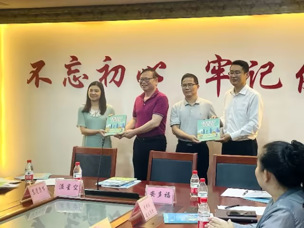 会议上,深圳市科普教育基地联合会辛秘书长将书刊《畅游科普场馆——深圳篇》赠送给东莞文旅体局与东莞市科协,众人进行合影留念。