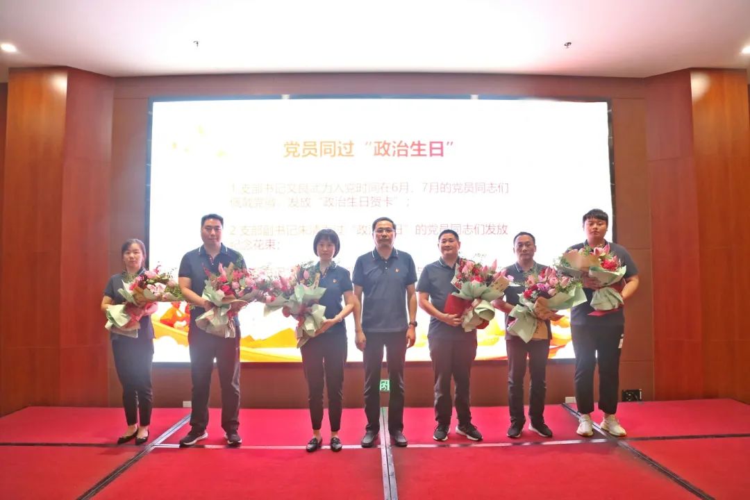 支部书记文良武同志为入党时间在6月、7月的党员同志们佩戴党徽并发放“政治生日贺卡”,支部副书记朱清同志向过“政治生日”的党员同志们发放纪念花束,进一步强化了党员政治身份认同感和组织归属感,激励党员永葆入党初心,坚定政治方向,坚守崇高理想,再燃奋斗激情,继续砥砺前行。