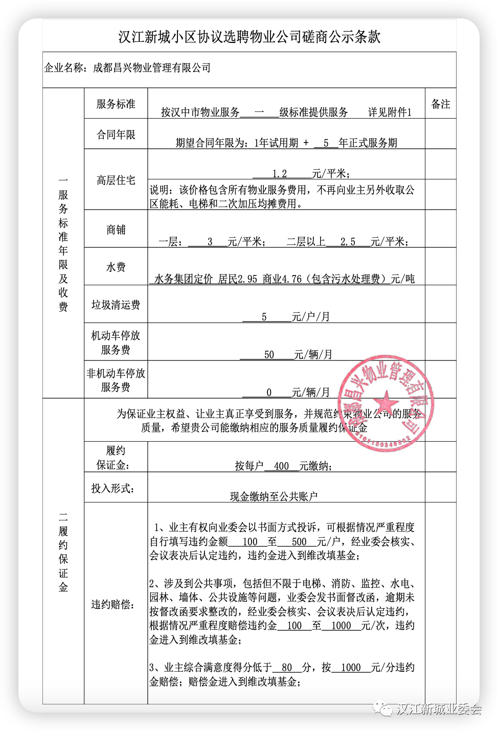 成都昌兴物业管理公司承诺