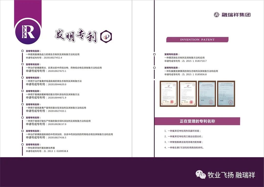 融瑞祥是一个专注满足养殖场(集团)个性化需求的综合性、国际化平台,目前已与南京农业大学、河南农业大学、河南财经政法大学、河南科技大学和河南牧业经济学院等多所高校建立了广泛的合作关系并已形成动物保健、营养、药品和微生态生物中药四大产品集群。拥有标准化的兽药(粉剂、预混剂、散剂、液体消毒剂)、液态饲料添加剂、固态饲料添加剂、液态预混合饲料、天然植物饲料原料和微生态生物发酵9条生产线,能够满足用户不同层级的需求;拥有畜牧业公益商学院(复兴之梦商学院),下辖阳光赋能团和新媒体运营中心;动物肠道健康智慧管理研究院,下辖河南省动物肠道疫病防控国际联合实验室,包含动物疫病防控检测,畜禽智慧牧业科创和功能性药物研发三个中心,河南省益生菌生物转化中兽药产业技术创新战略联盟包含微生态生物发酵中心。企业员工150人,产品与服务惠及亚洲、非洲等多个国家和地区。