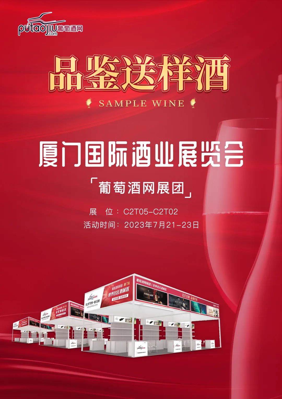 葡萄酒网展团位于厦门国际展中心C2厅1、2、5号展区。葡萄酒网展团以精品美酒团为主题共赴厦门城市。推出:高分获奖酒展区,高分名庄酒展区,现场更有《品鉴送样酒》活动,既能品鉴精品好酒,还能免费领取精美葡萄酒,为福建厦门的葡萄酒经销商,爱好者们带去极致体验。