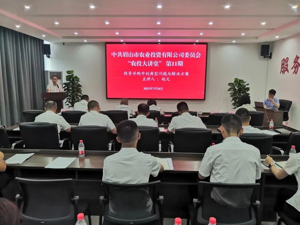 为有力推动“人才强企”战略落地、规范人力资源开发管理、提升公司人力资本存量,7月26日下午,市农投公司党委集中开展了“农投大讲堂”第十一期——投资并购之路的探索和案例分享专题培训会。市农投公司领导班子成员、三级公司领导班子成员出席会议。