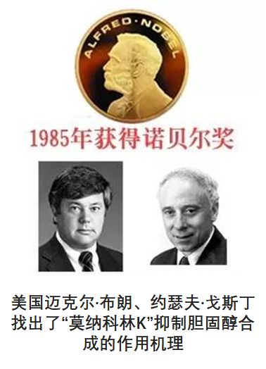 1985年,美国纽约医生迈克尔∙布朗和南卡罗利那州医生约瑟夫∙哥斯丁进一步找出了“莫纳可林K”抑制胆固醇合成的作用机理,并因此于1985年获得诺贝尔奖。