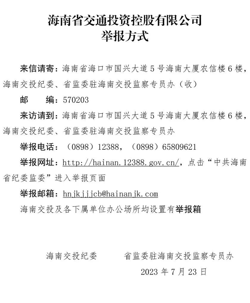 海南省交通投资控股有限公司举报方式