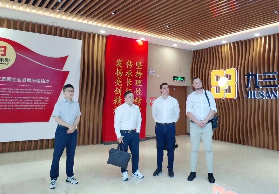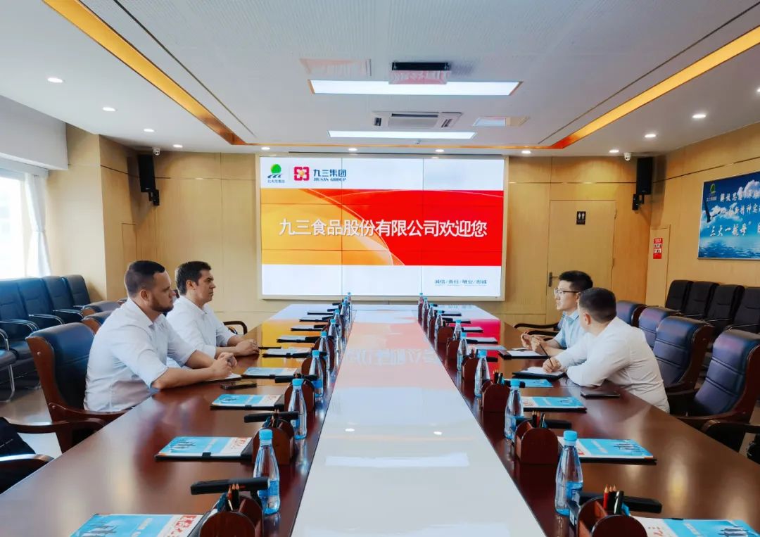 7月26日,俄罗斯原料供应商EFKO集团一行2人到九三食品股份有限公司参观考察,公司原料采购部相关人员陪同,并座谈交流。
