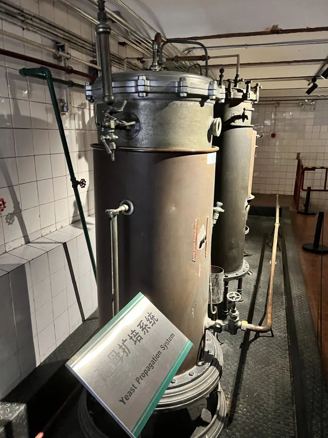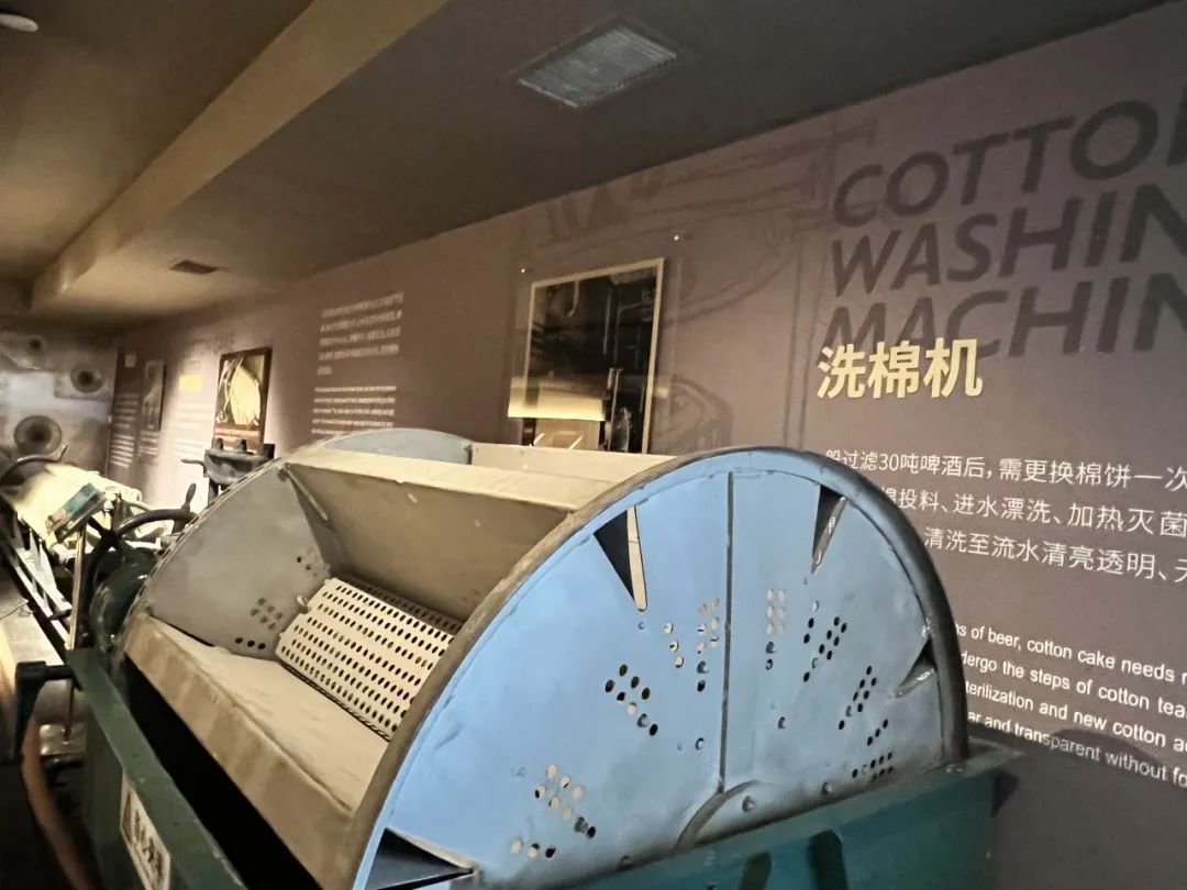 在第二区域,同学们观看生产工艺流程、车间环境与生产场景。为重现历史原貌,博物馆在糖化车间的老发酵池中设置了工人生产劳动的雕塑模型,同时复制了老实验室场景和工人翻麦芽场景,栩栩如生。其中,工厂里也不乏新建造的科技感场景,融入了当代的美学设计,光与影交织,配合VR技术、全息投影等,让我们身临其境的感受啤酒的制作流程。