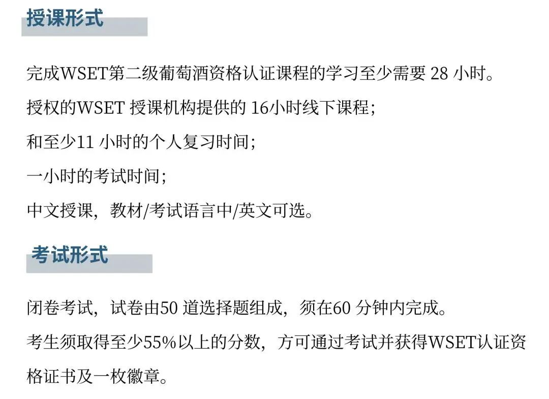 课程考试:50道选择题,答对55%,获得WSET L2证书+徽章