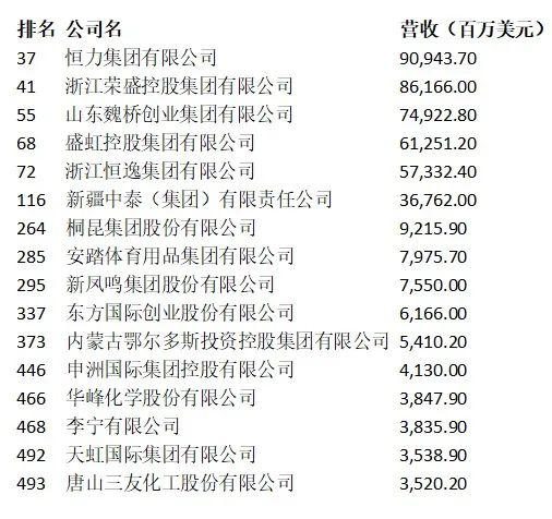 多家纺织化纤服装相关企业上榜2023年《财富》中国500强