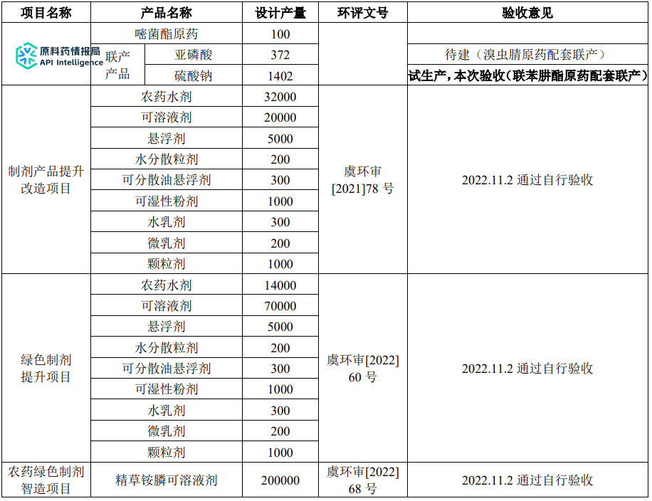 7月24日,关于永农生物科学有限公司年产8000吨高效农药原药技术改造项目(先行)验收在官网公示。