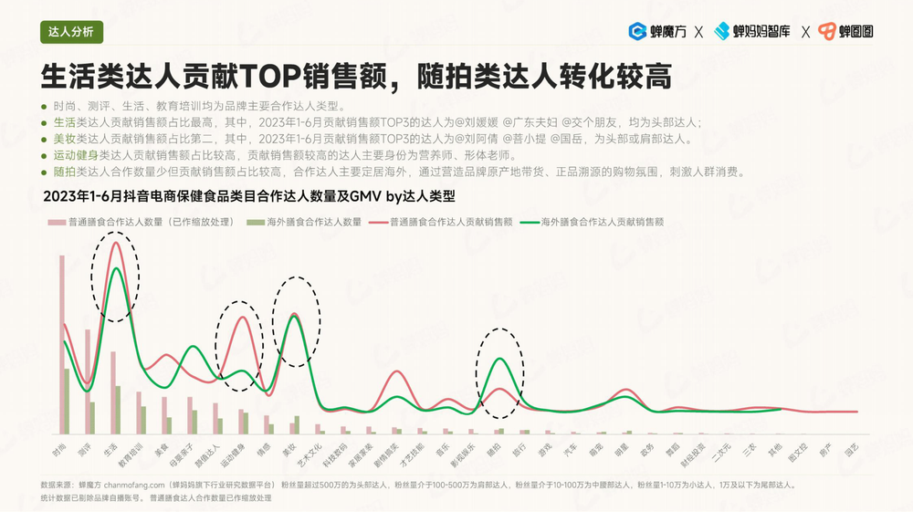 在内容生态方面,视频带货方式开始发力成为关键。消费者更倾向于选择头部达人在普通膳食类目下进行推荐,而生活类达人在内容贡献方面最受欢迎。同时,随拍类达人的转化率也较高,这为品牌合作和产品推广提供了机遇。
